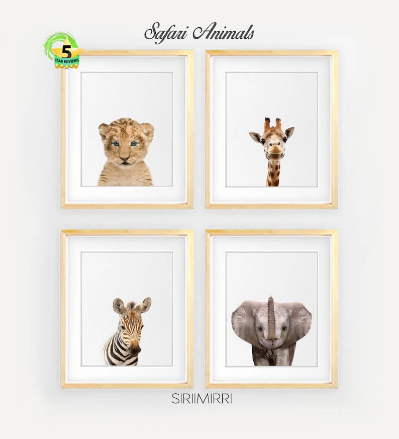 Safari Nursery Decor Baby Animals Set 4 Lion Zebra Elephant Etsy