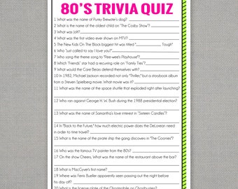 Free Printable 80s Trivia Game 80s Parties 80s Birthday Parties