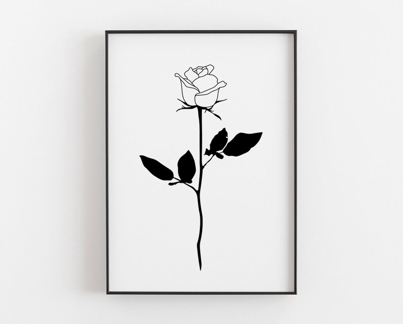 Black Rose Printable Rose Print Rose Silhouette Poster Etsy